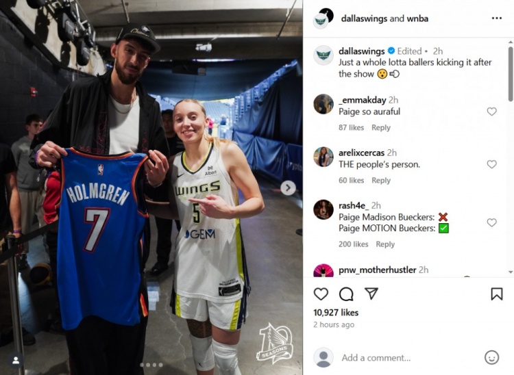 赛后,飞翼队官方社交媒体晒出布克斯与太阳队杰伦-格林、雷霆队切特-霍姆格伦的合影,配文写道:"不过是几位巨星在惊艳表现后的例行聚会罢了😮💨"